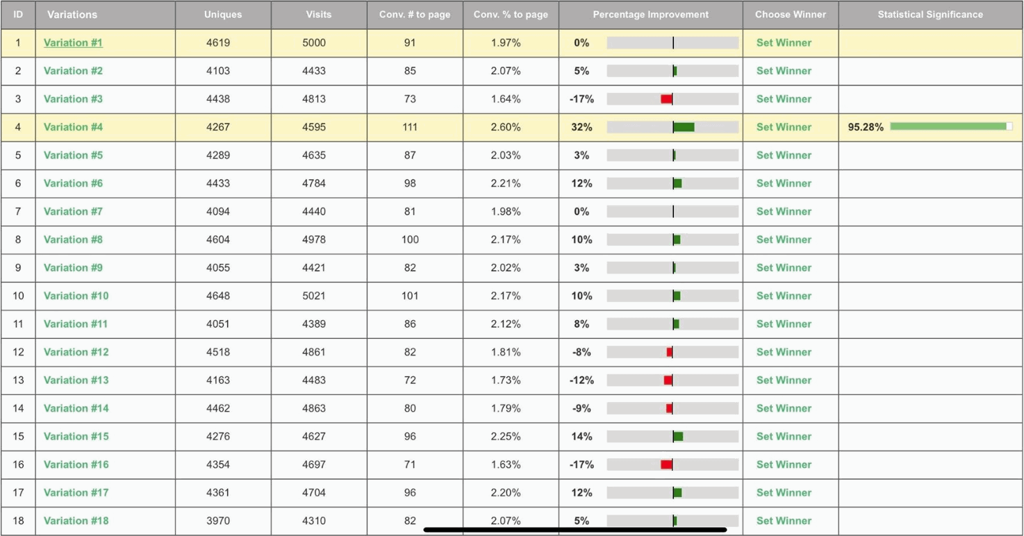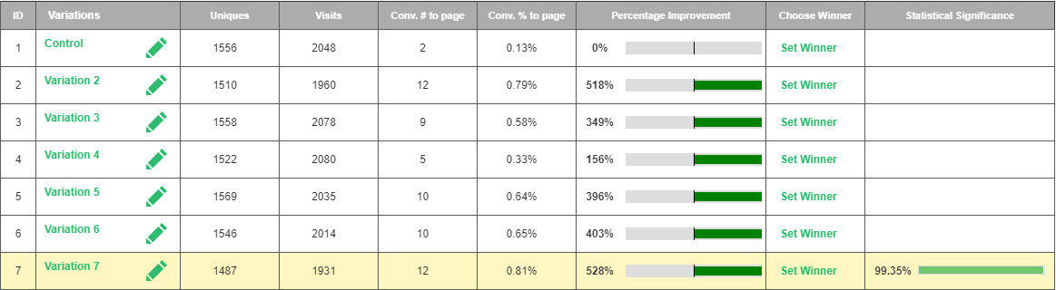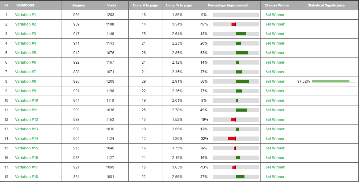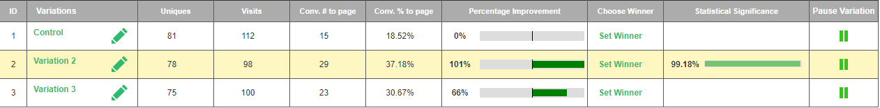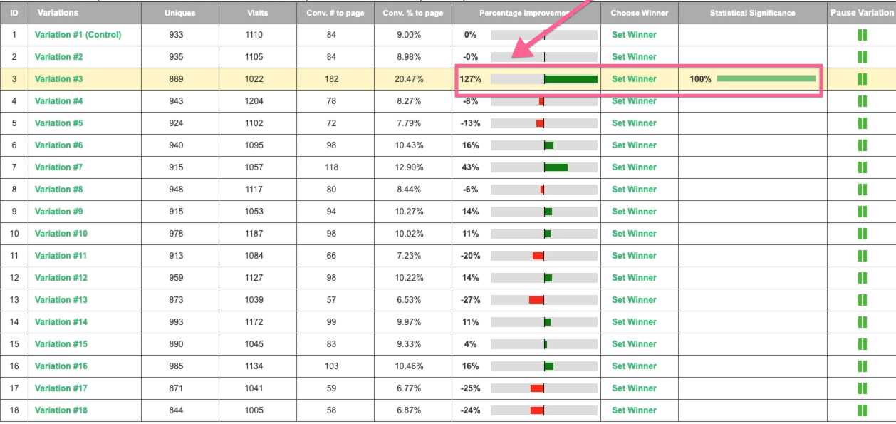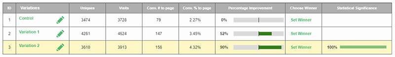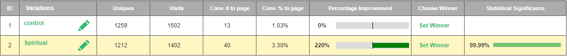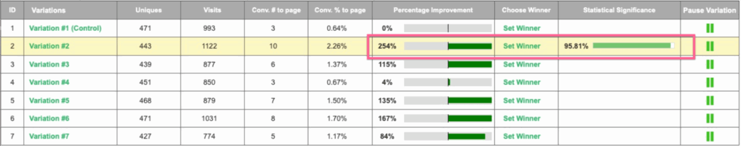 By utilizing Visiopt’s Smart Relational Algorithm (™) we took an existing sales page and almost doubled its conversions in a single test.
