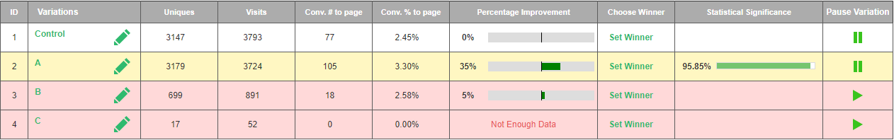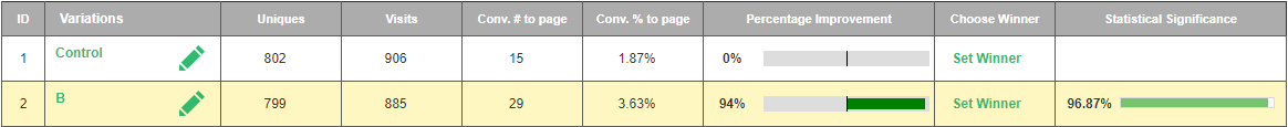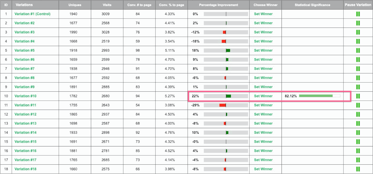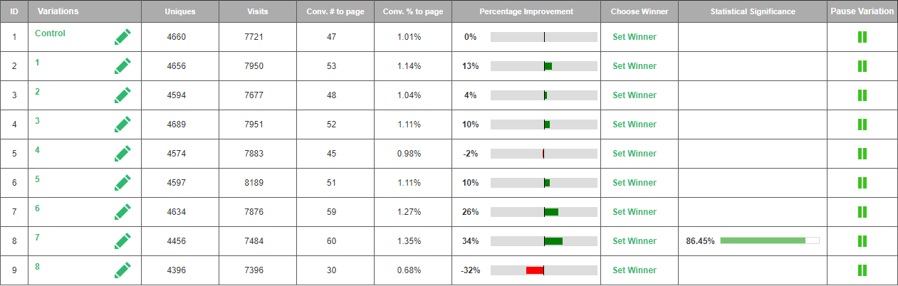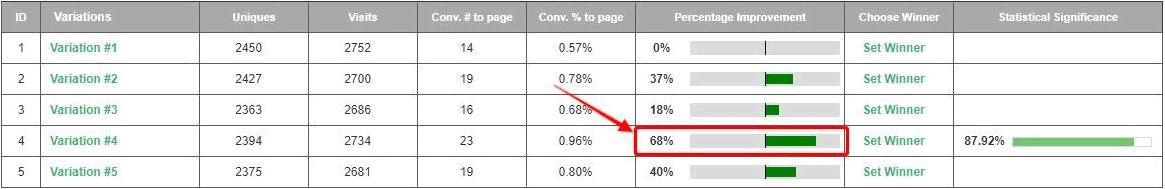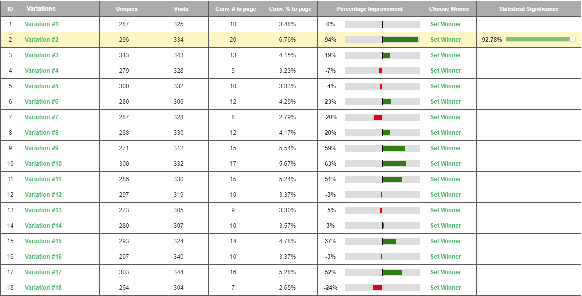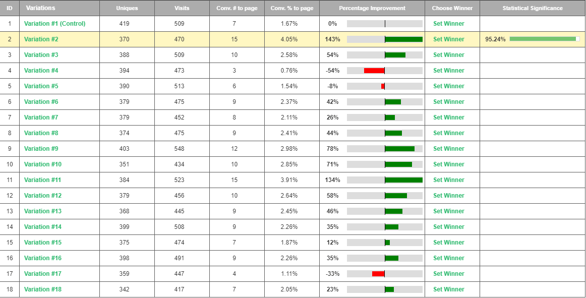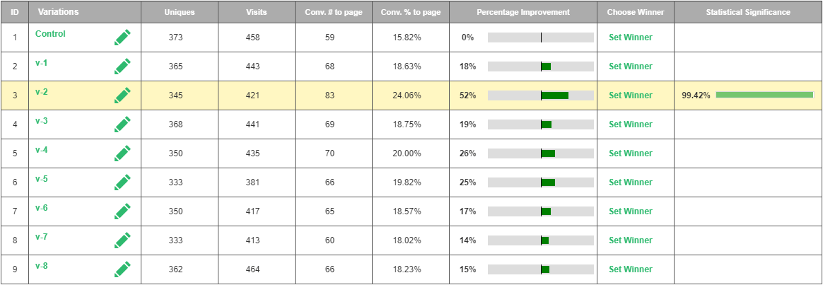 By utilizing Visiopt’s Smart Relational Algorithm (™) we took an existing sales page and almost doubled its conversions in a single test.