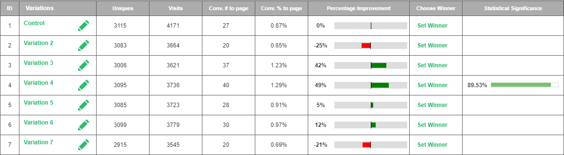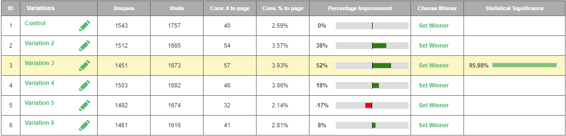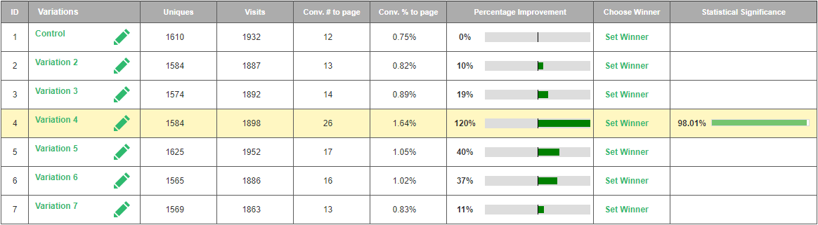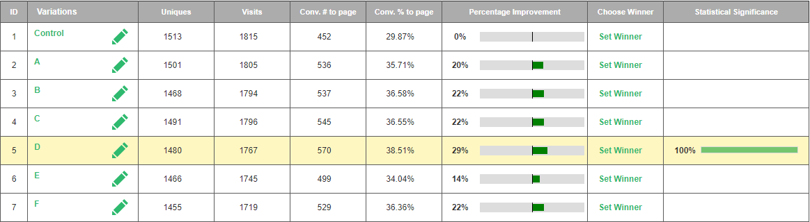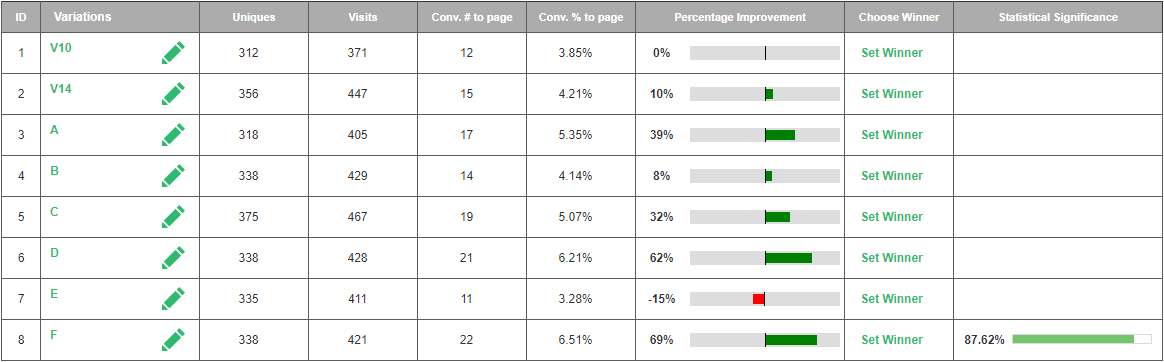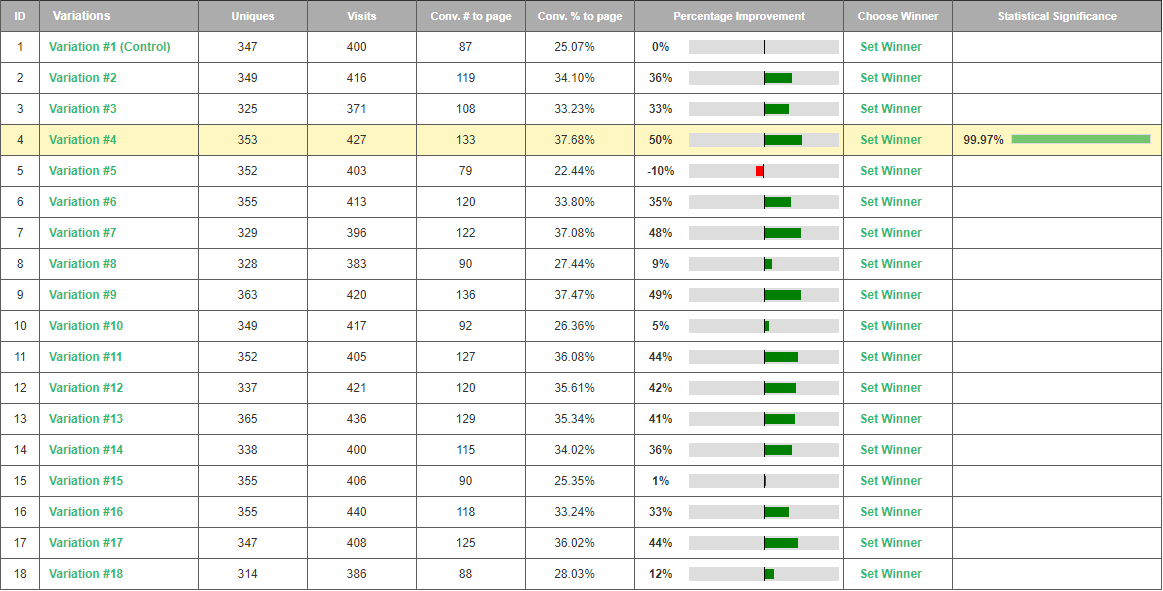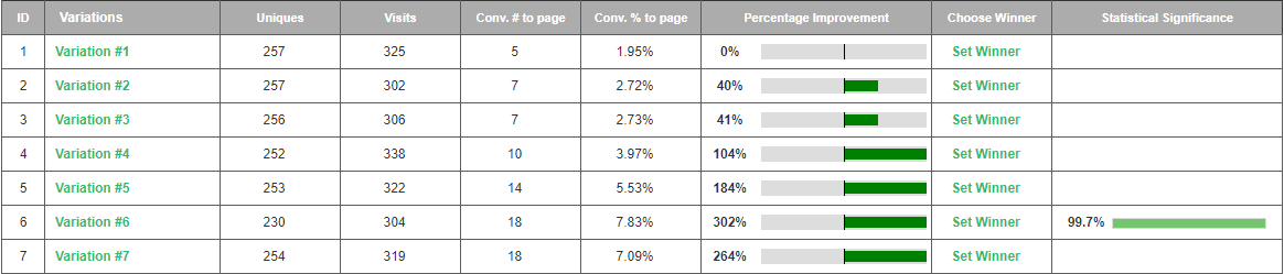 One test. Limited variables available. Yet a combination of Visiopt’s™ proprietary technology and our time-tested design of experiment methods resulted in a normally unheard-of large increase in conversions.