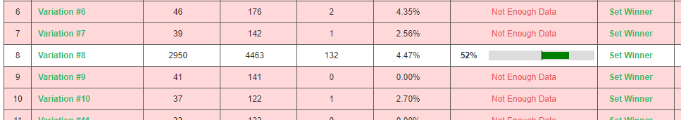 We identified and tested 8 variables on a small Presell page. Out of these 8 variables we created 16 different versions and ran the equivalent of 4,374 different combinations. All in 10 days time.