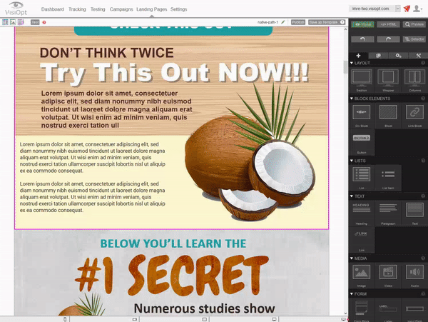The Visoipt™ Landing Page designer allows you to create what you see. Create what you dream about. There are no limitations. No restrictions. No coders required.